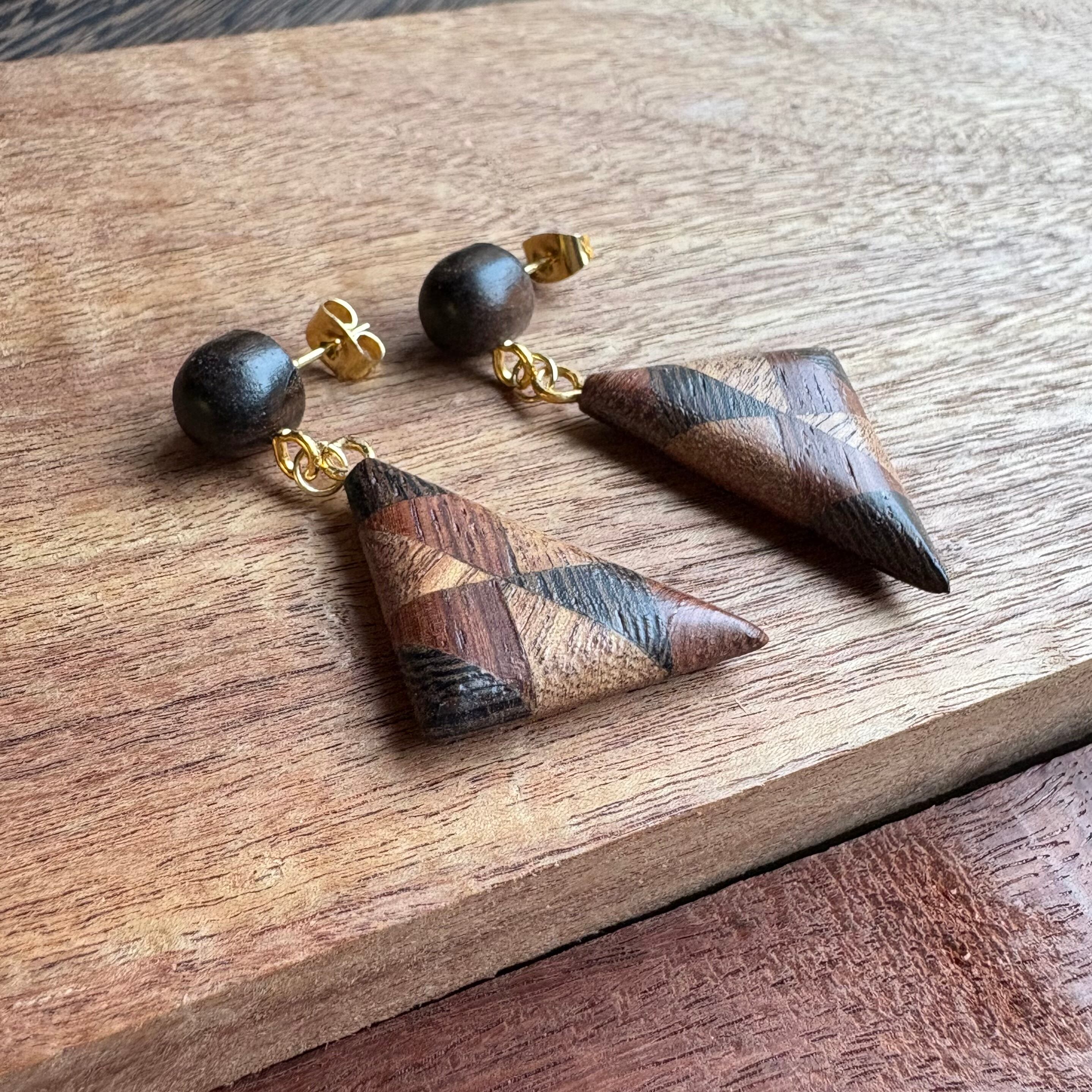 178 寄木トライアングルピアス 14KGF サージカルステンレス 樹脂 イヤリング