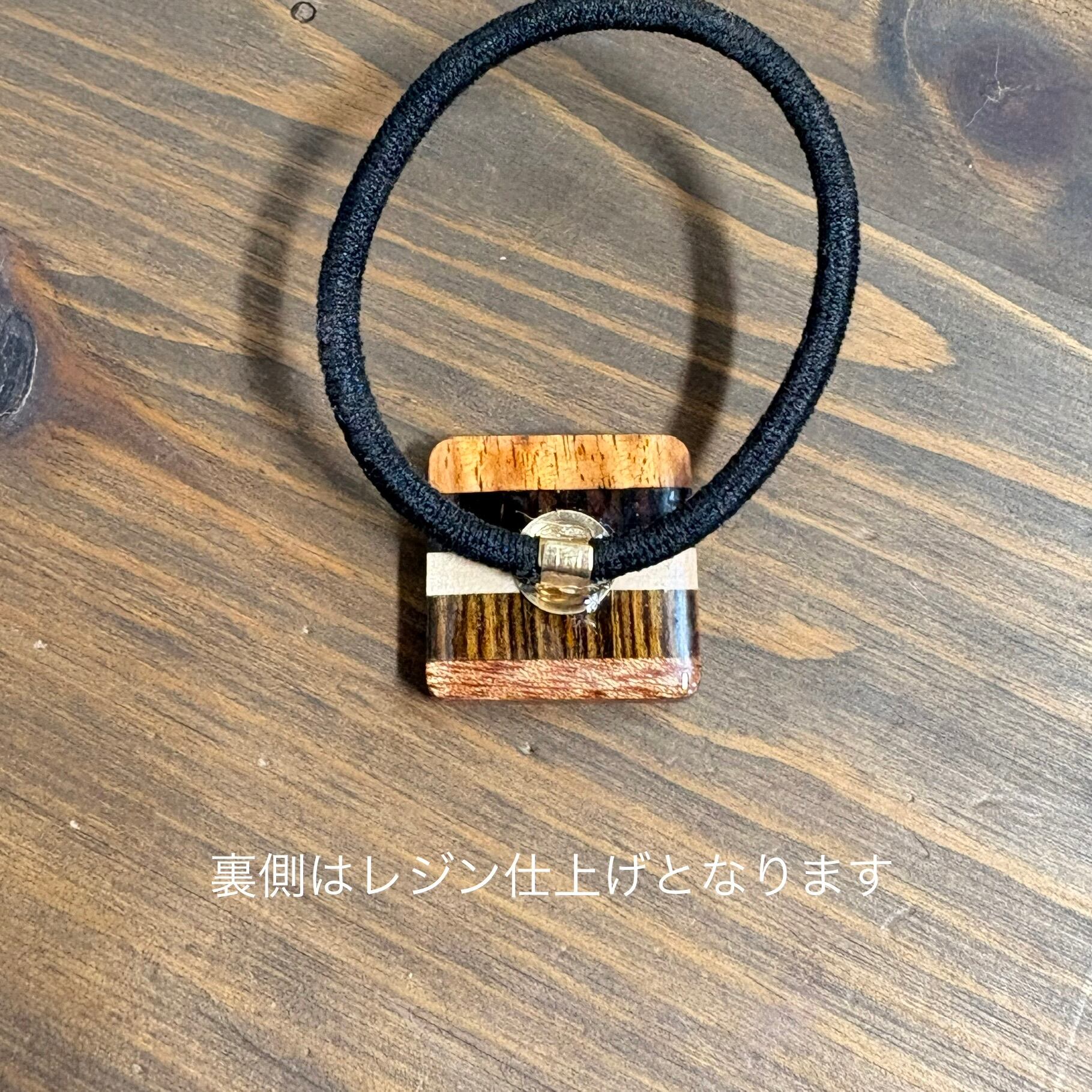 5種類の天然木を使用した寄木ヘアゴムです