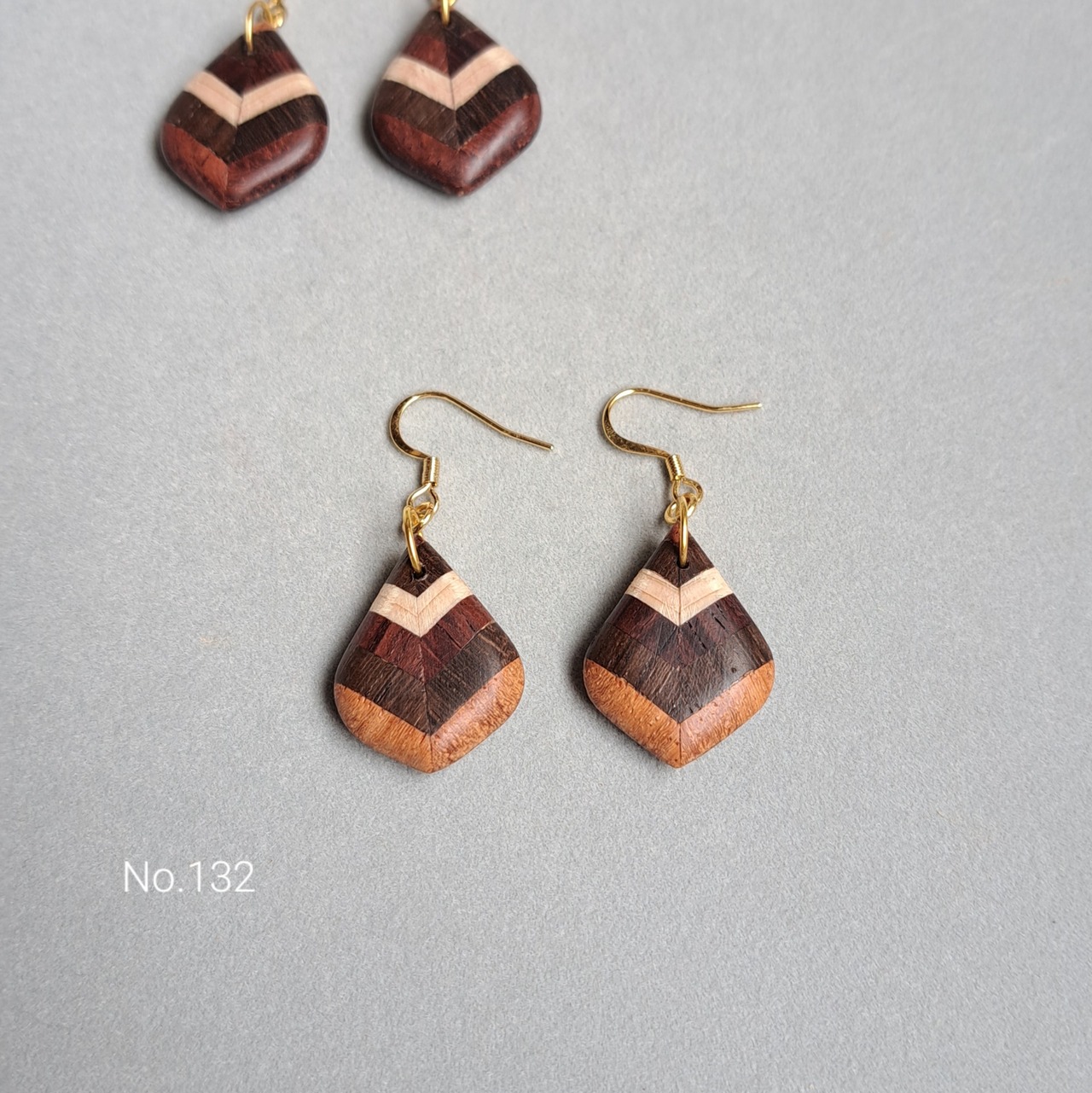 131・132 寄木リーフ型ピアス