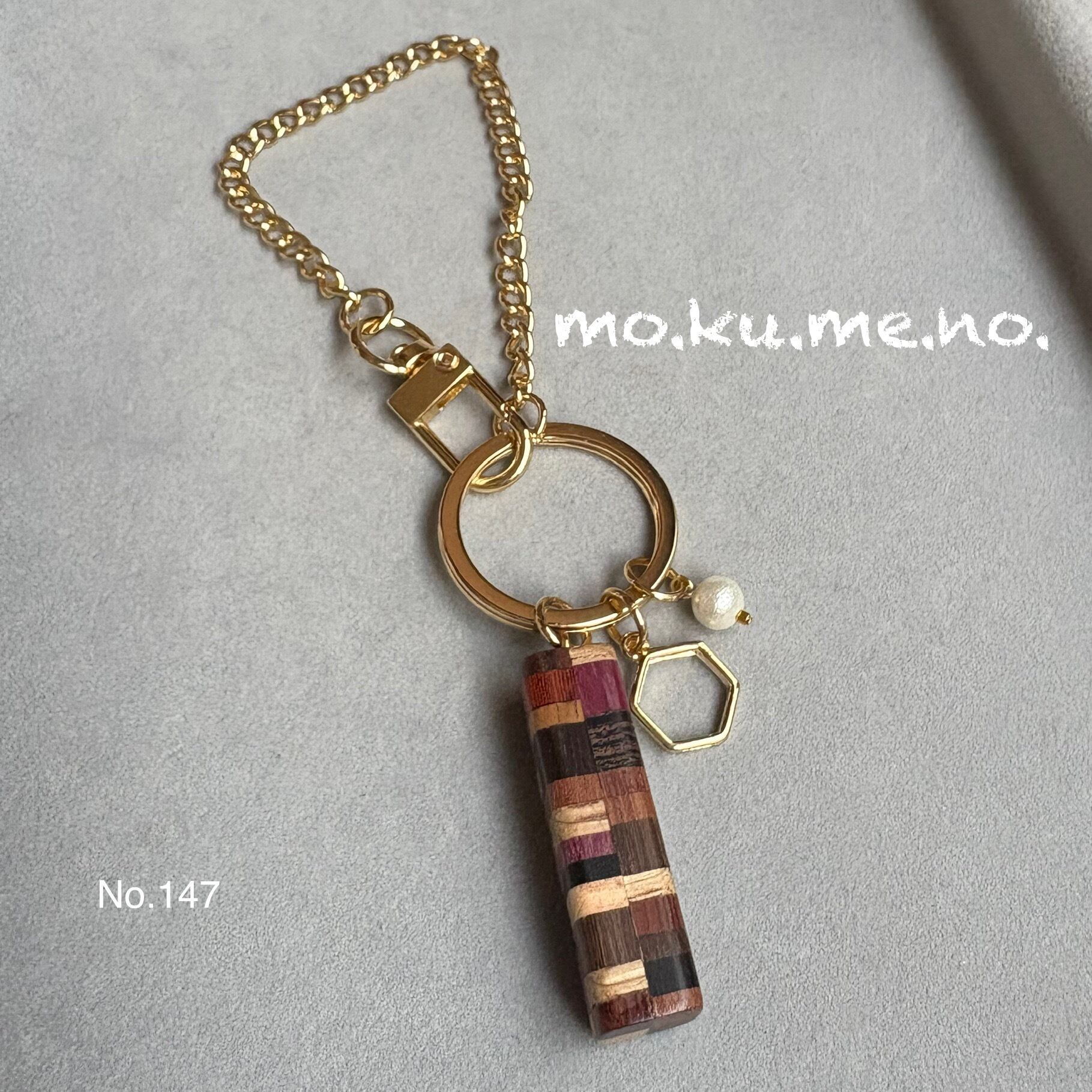 147 寄木カラフルモザイク柄角柱バックチャーム